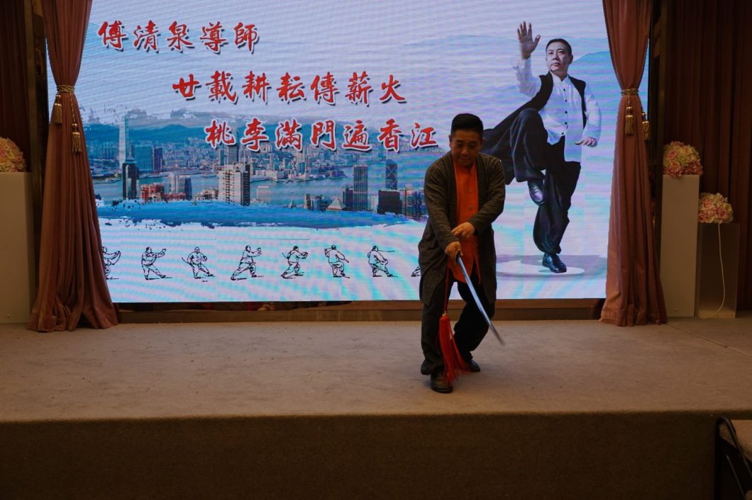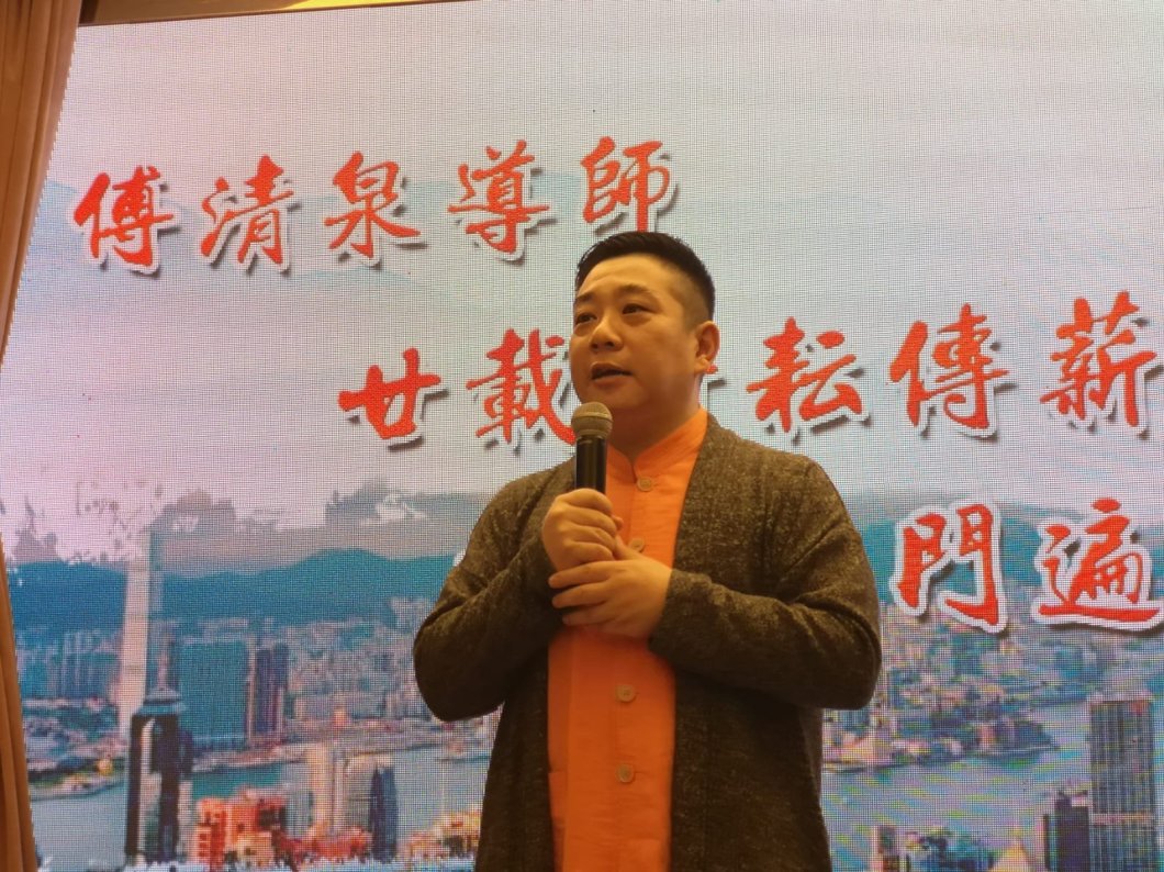January 18, 2020January 18, 2020 Ann 廿載耕耘傳薪火,桃李满門遍香江。 會長傅清泉導師香港傳拳20周年庆典,2019年12月23日在尖沙咀THE ONE隆重舉行。獲邀出席全是的香港徒弟及學生或薪火相傳的泉友。 \n Share this: Share on Facebook (Opens in new window) Facebook Share on WhatsApp (Opens in new window) WhatsApp Like Loading...
