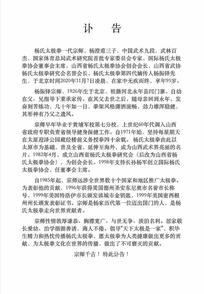 November 7, 2020November 7, 2020 HK Tai Chi Quan Club Admin 庚子年令人悲哀的立冬,愿杨公振铎老舅爷一路走好 Share this: Click to share on Facebook (Opens in new window) Facebook Click to share on WhatsApp (Opens in new window) WhatsApp Like Loading...